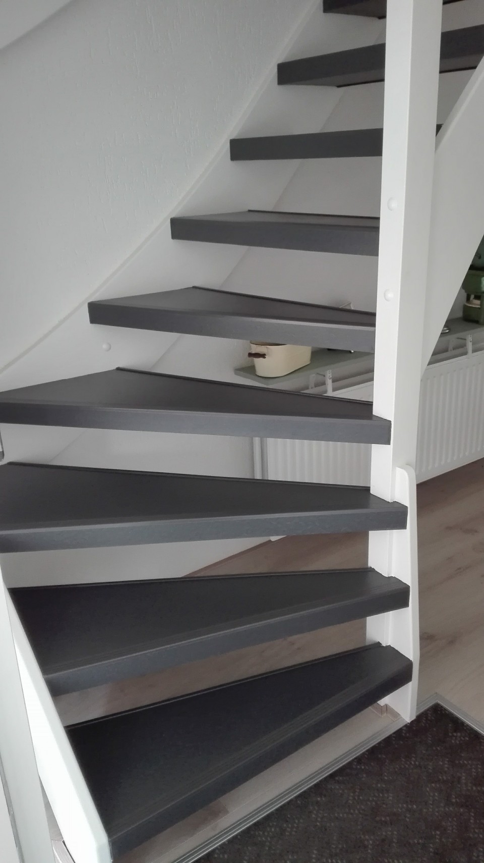 Onze unieke elegant gebogen stootborden dekken de onderkant van de traptreden perfect af en zorgen tevens voor extra veiligheid. Tot slot worden de randen van alle traptreden afgekit in dezelfde kleur als uw nieuwe trap.